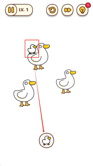 2、进行游戏:点击并找到图中的小鸭角色完成游戏。