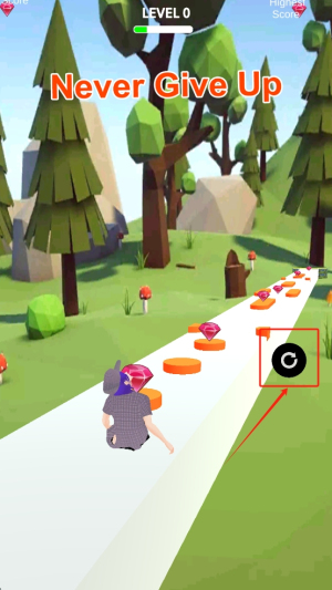 3、继续游戏:若角色摔倒,点击屏幕中心的按钮继续游戏。
