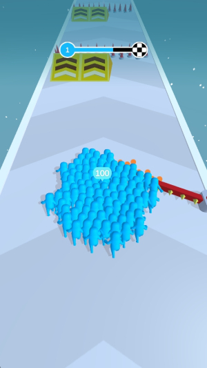 2、操控小人行动:通过触屏滑动控制小人移动方向和速度,灵活躲避障碍,同时避免被对手打散人群。
