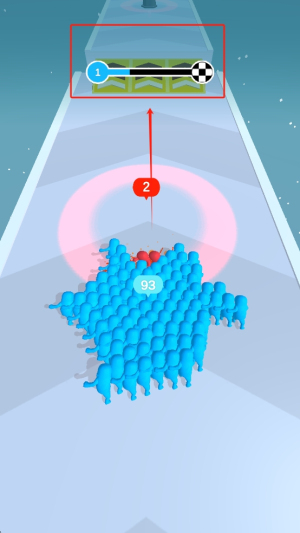4、冲刺关卡终点:成功战胜对手后,带领人群冲破剩余障碍,顺利抵达终点,解锁下一关挑战。