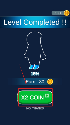 3、完成关卡:达到关卡终点,领取奖励并选择是否双倍领取。