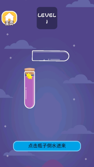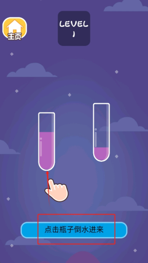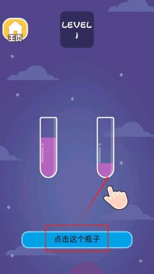 1、点击瓶子:点击屏幕上的瓶子开始倒水。