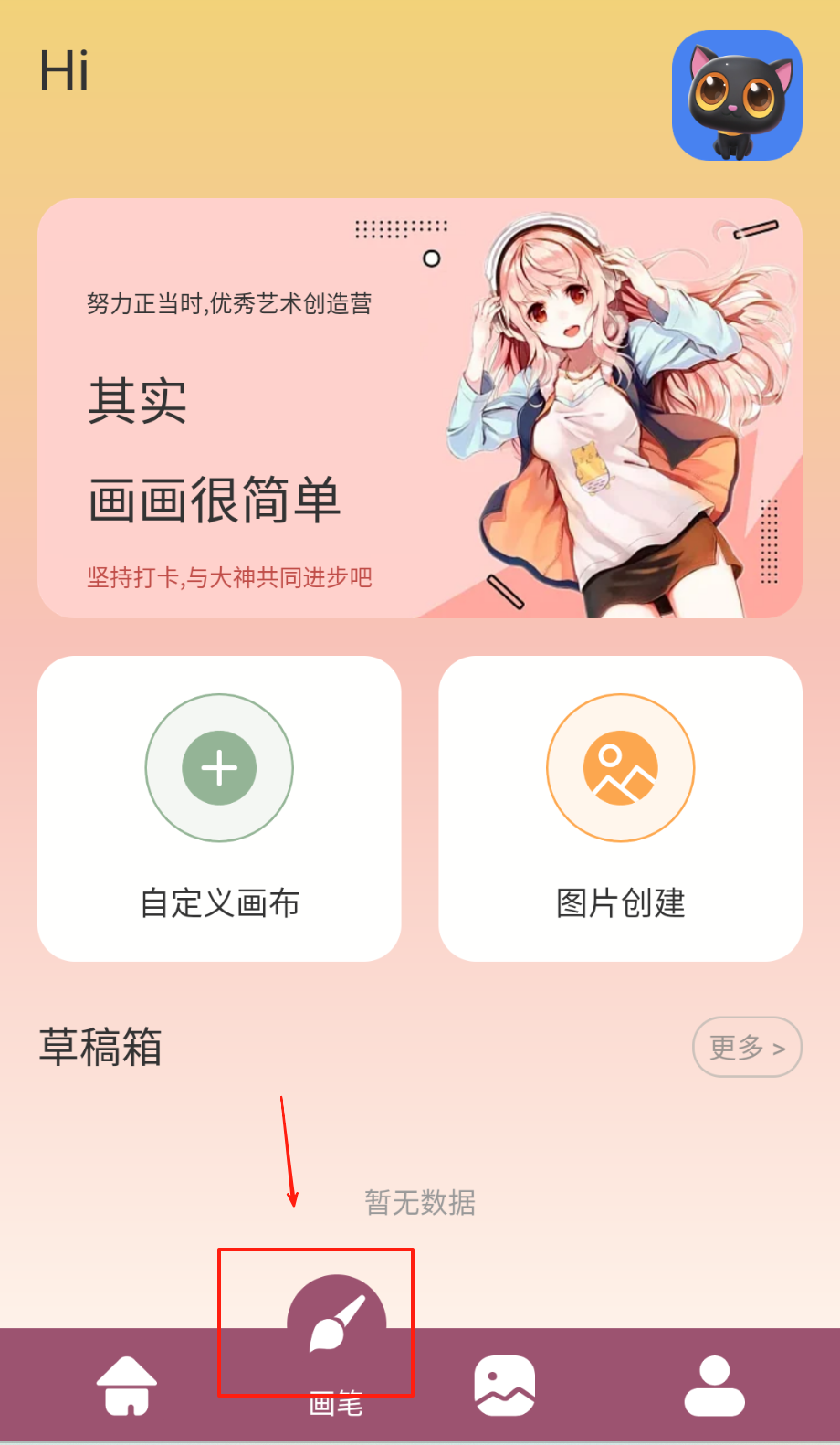 1、创作页选择分镜模板或导入外部图片,使用12种专业笔刷绘制角色场景细节。