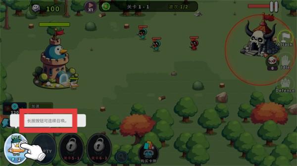 3、根据提示,优先召唤实用单位抵御敌人进攻,保护己方城堡,通过合理的资源分配和单位部署,赢得战斗胜利,推进关卡进度。