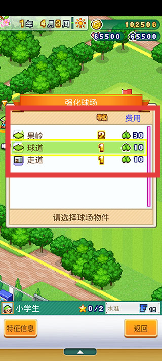 2、随着游戏推进和资金积累,点击“强化球场”,对已有的果岭、球道、走道等设施进行升级,提升球场品质和吸引力。
