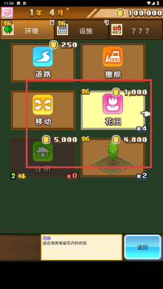2、在商店中,找到“花田”选项(价格1,000金币),结合自身金币数量(如100,000金币),合理规划资源进行购买,开启花田建设。