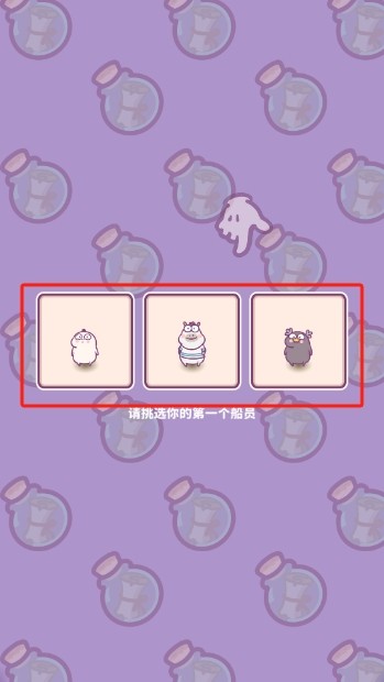 1、游戏开始,面对“请挑选你的第一个船员”提示,观察三个船员形象,根据个人喜好或策略选择其一,为后续冒险组建初始团队。