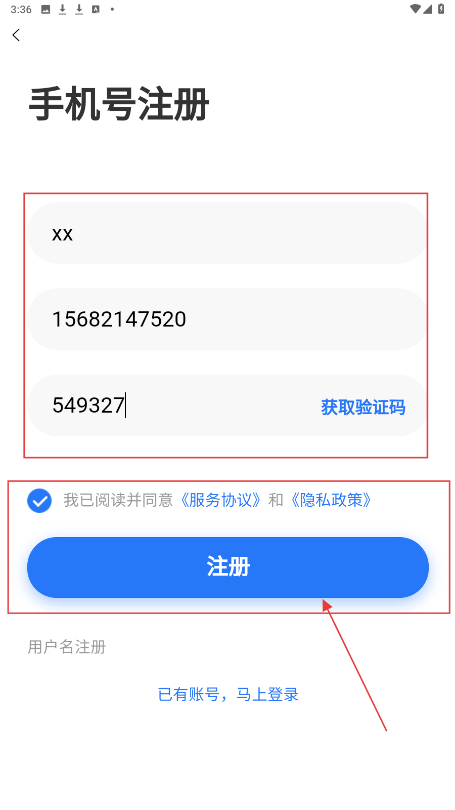3、勾选协议,点击【注册】,完成账号注册。