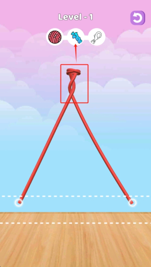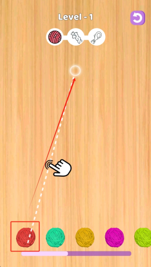1、选择毛线:点击红色毛线球,将其拖到针上开始编织。