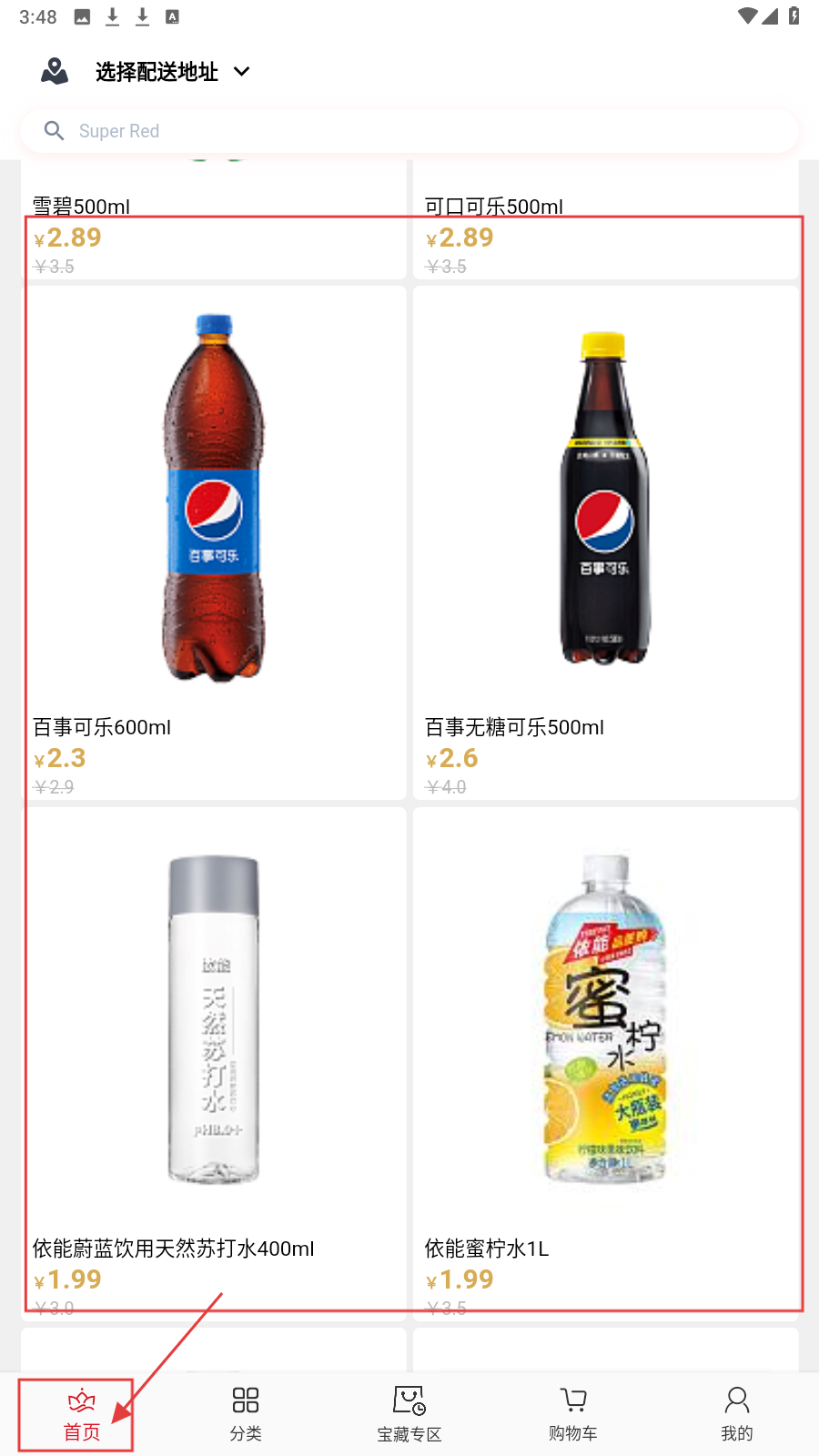 2、往下滑动,可以查看特价商品(如百事可乐、依能饮料)。