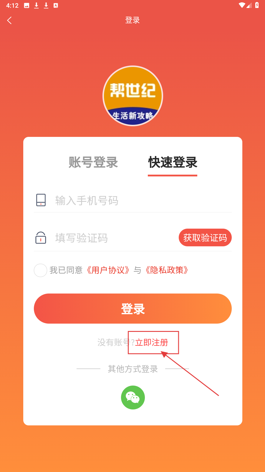 2、登录页点【立即注册】,填手机号、验证码、密码。