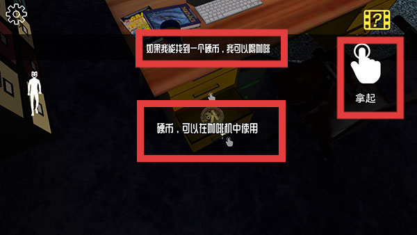 2、状态管理:获取咖啡维持清醒躲避困倦,根据噪音反馈选择藏身位置规避危险。