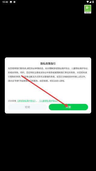 1、进入游戏,点击【同意】。