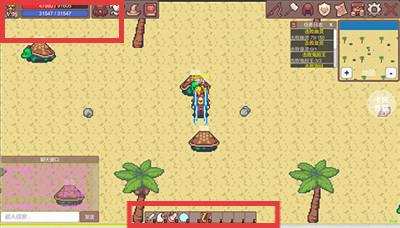 2、切换到沙漠等不同场景时,关注屏幕下方的功能栏,合理使用道具应对场景中的挑战,如采集资源、对抗怪物等。
