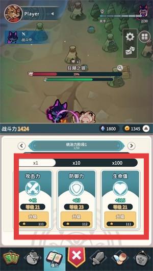 2、战斗准备阶段,利用“攻击力”“防御力”“生命值”等属性提升选项,根据战斗需求,选择合适倍数进行属性升级,增强队伍战斗力。