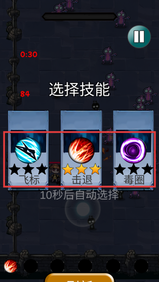 3、出现“选择技能”界面时,根据战况和敌人特点选择合适技能。若不确定,可等待10秒自动选择。