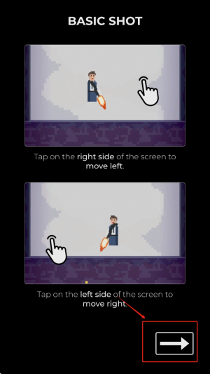 2、如何控制角色移动:根据提示点击屏幕左右两侧进行移动。