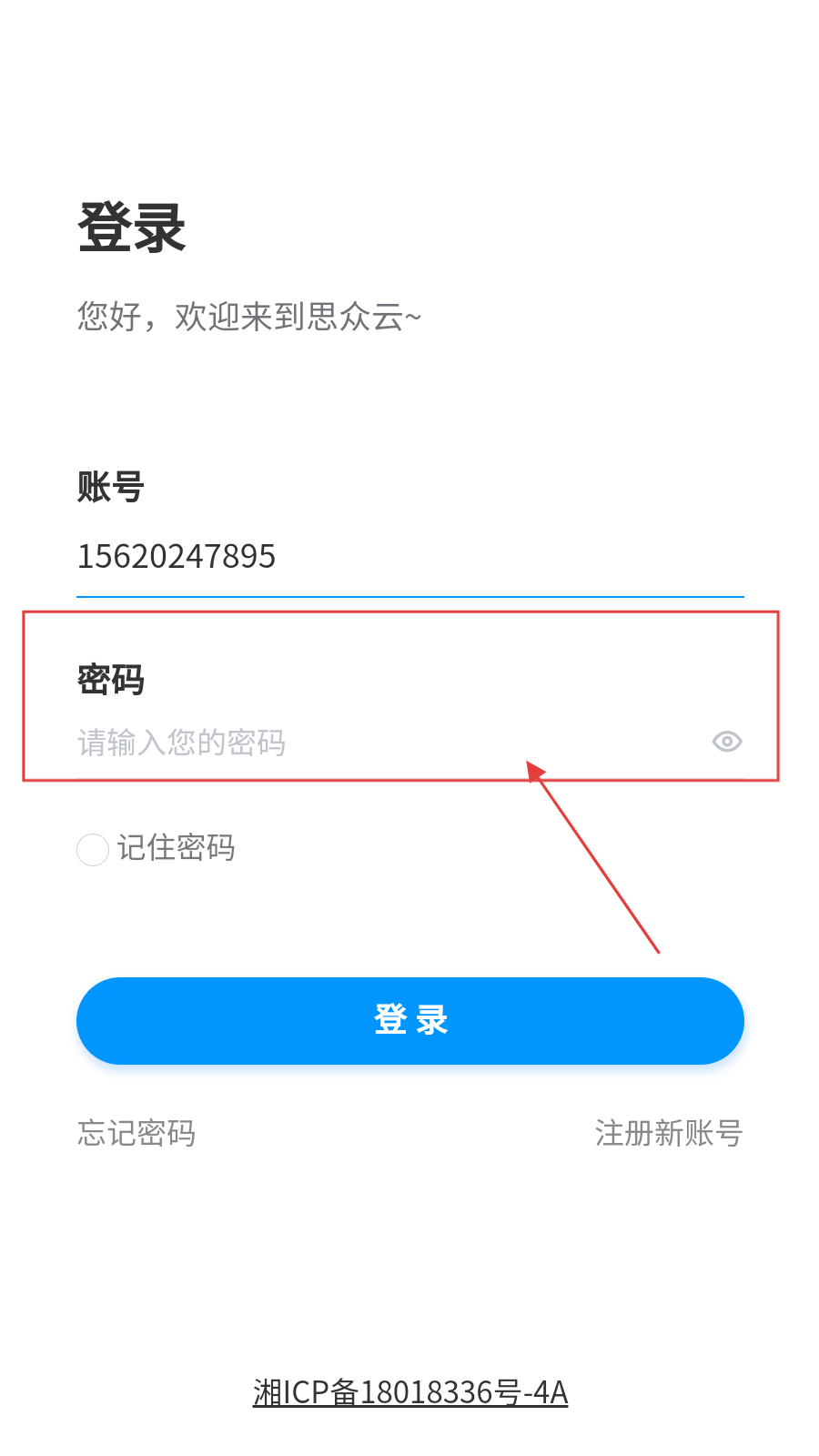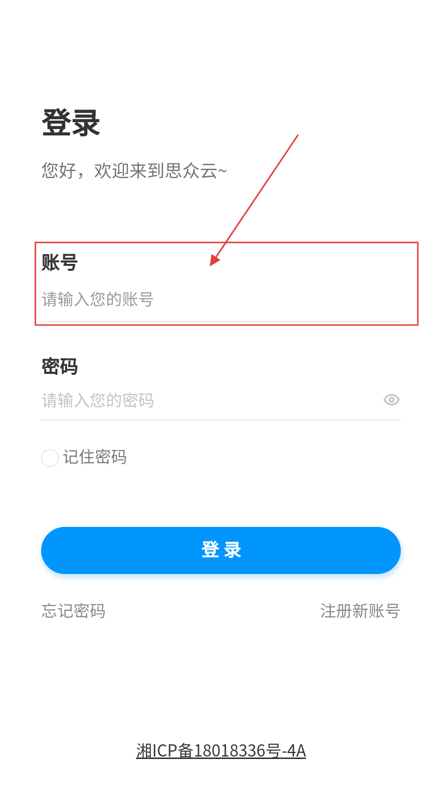 1、打开APP登录页,在【账号】栏输入账号。