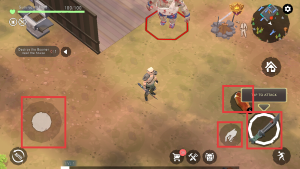 1、进入游戏,熟悉操作按钮。左下角虚拟摇杆控制角色移动,右下角按钮可发动攻击,还有拾取等功能键。