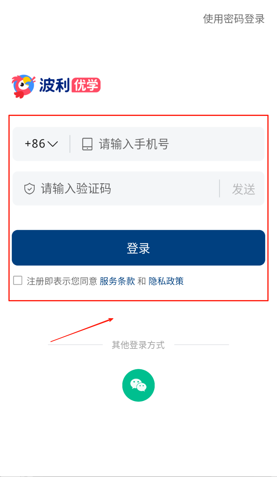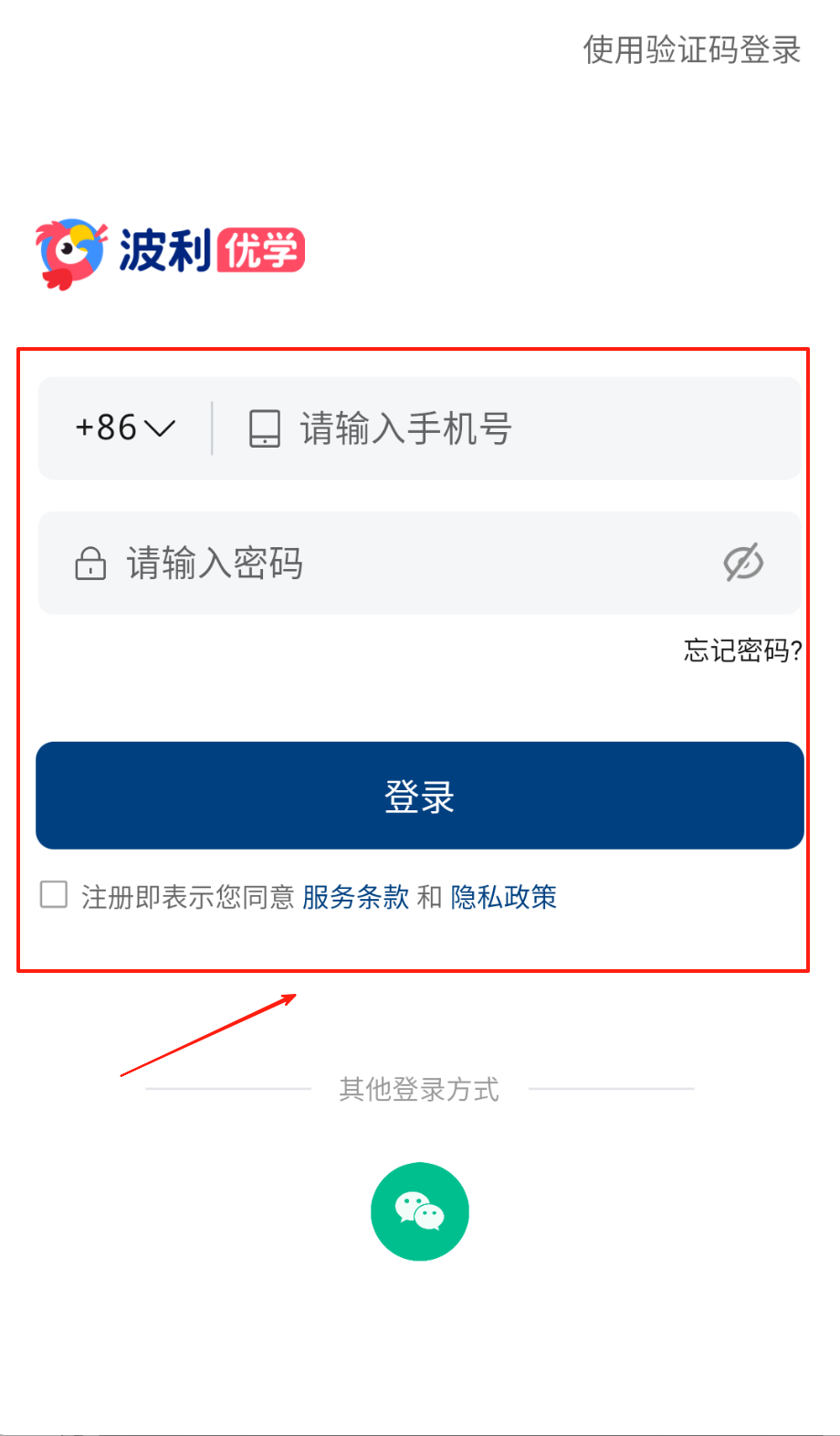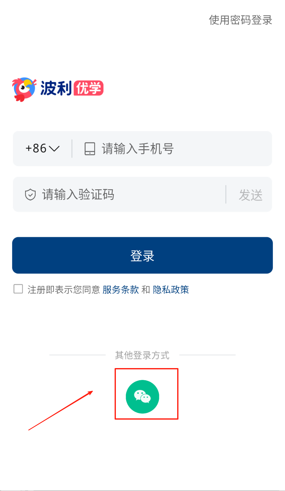 3、其他登录方式里有绿色微信图标,点它就能跳转微信授权,记得勾选同意服务条款的方框再按蓝色登录按钮啦。