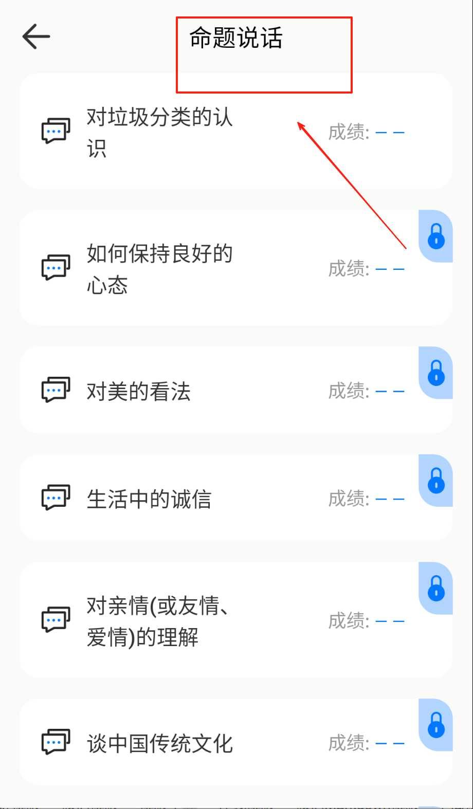 2、命题说话抽取家乡话题等30类主题,智能防作弊系统检测背诵模板,内容完整度评估精确至语句级。
