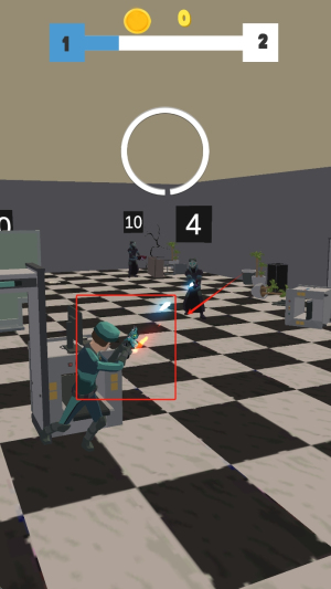 2、如何射击敌人:点击屏幕中央的圆圈进行射击。