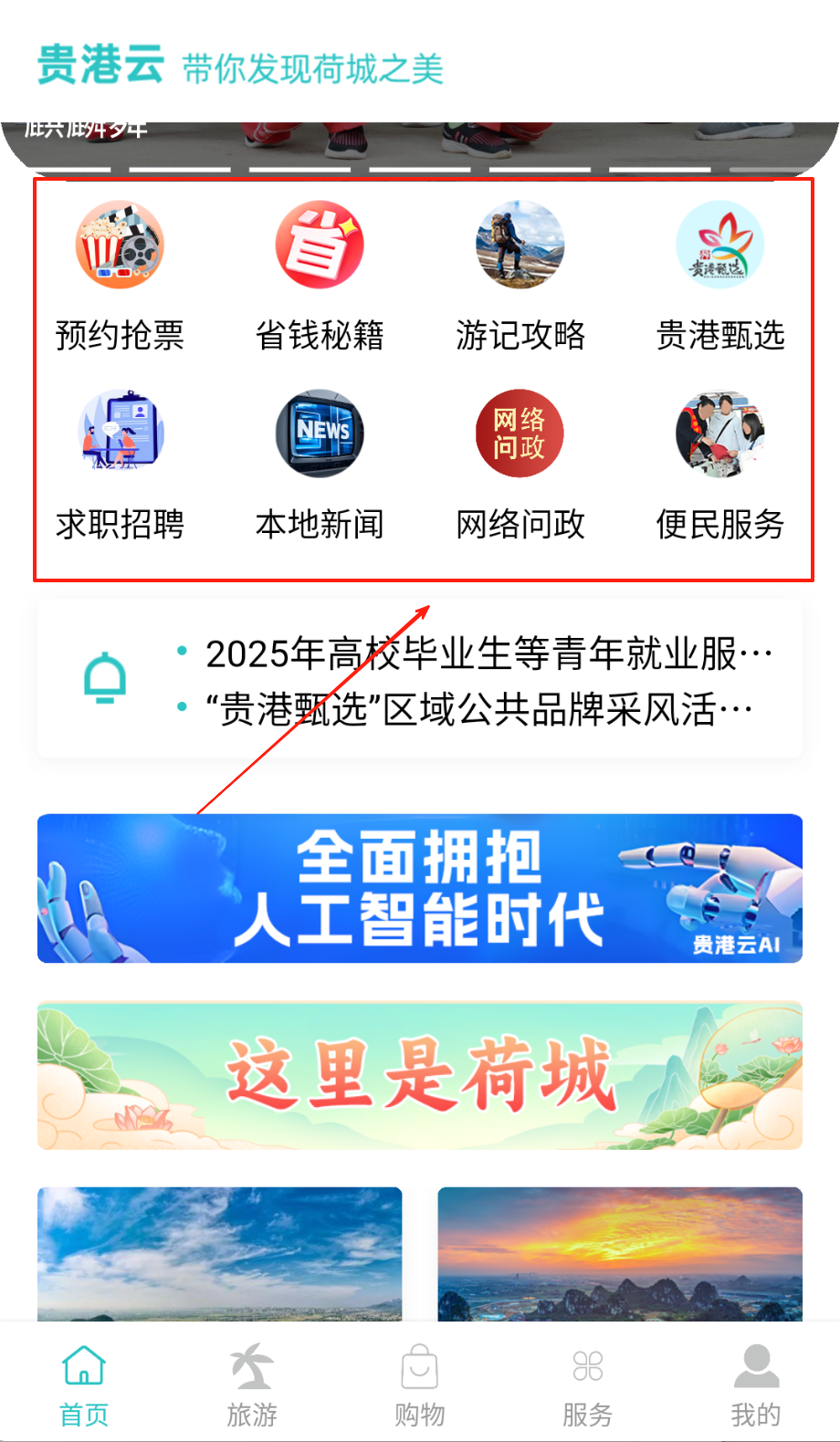贵港云集成五区两县实时新闻资讯,问政平台直通28个职能部门,旅游攻略覆盖桂平西山等12个景点,生活缴费支持水电燃气等八类服务,求职招聘对接千家企事业单位,政务服务实现全市范围一站式办理。
