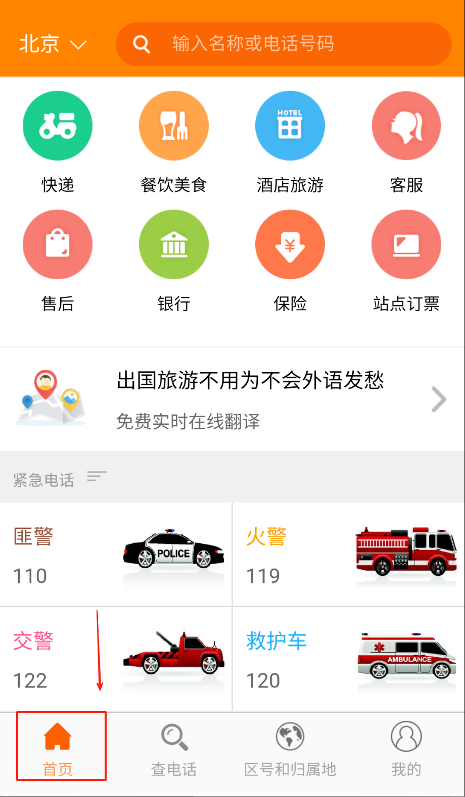 1、首页输入医院或银行等关键词,区域筛选器勾选本地或异地范围,紧急类电话带红色标识优先展示呢。