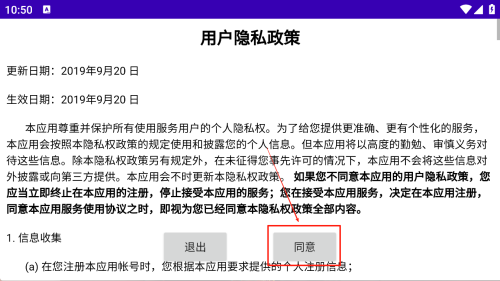 1、同意隐私政策:阅读并同意用户隐私政策,点击“同意”按钮。