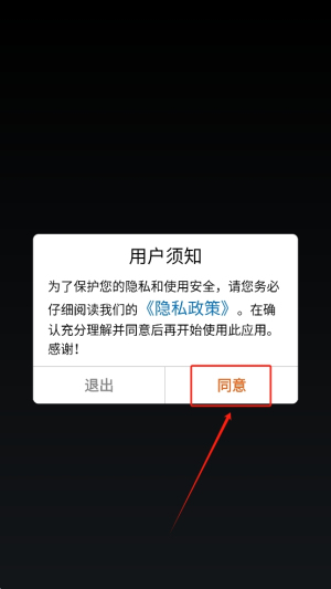 1、同意隐私政策:点击“同意”按钮,接受应用的隐私政策。