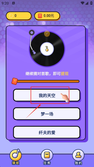 4、领取奖励进阶:答对题目即可领取红包奖励,积累分数解锁后续关卡,挑战更高难度的歌曲。