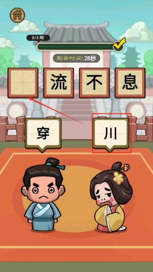 3、进行游戏操作:在给定的时间内,选择正确的字词完成题目。