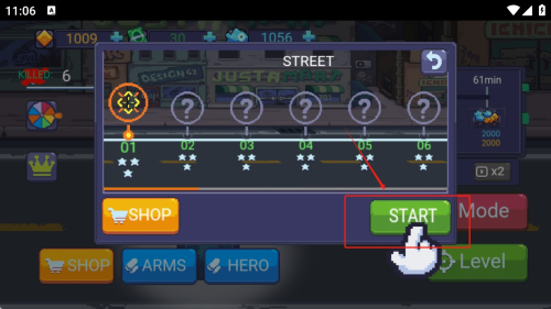 1、如何开始游戏:点击主界面的“START”按钮开始游戏。