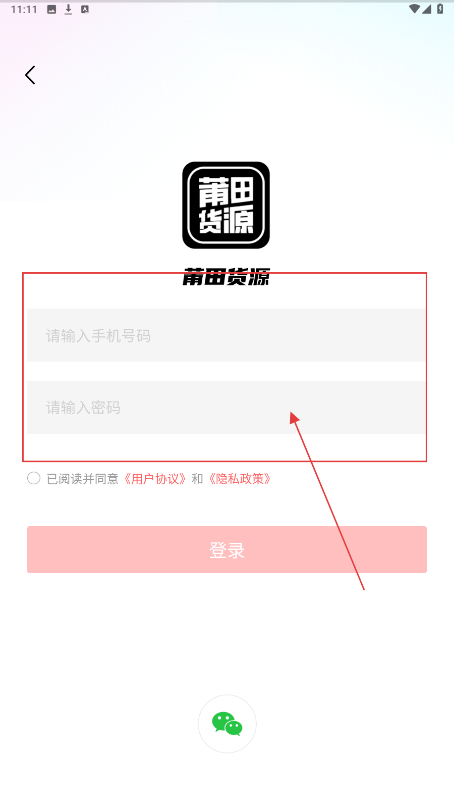 1、打开应用,进入登录页面,有账号登录选项(微信登录、手机号密码登录),点击对应登录方式准备操作。
