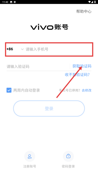 2、输入手机号码,点击【获取验证码】。