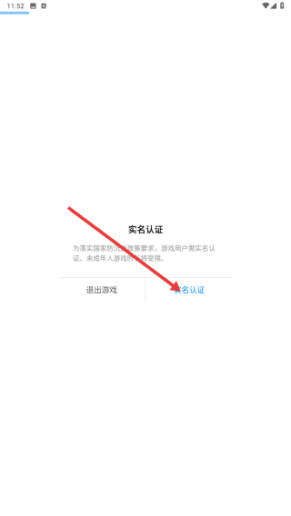 1、进入游戏,点击【实名认证】。