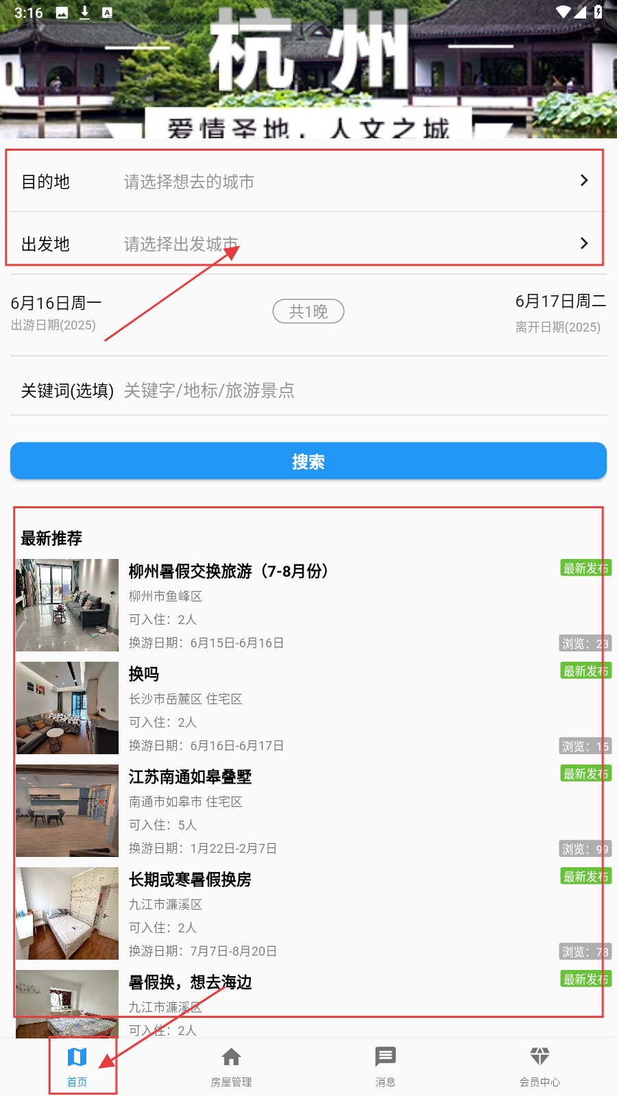 5、旅游社交互动:用户可通过平台轻松进行换房旅行,交换房屋互相住,结识新朋友,分享旅行乐趣,增进友谊。
