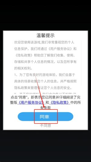 1、同意条款:阅读并同意应用的用户协议和隐私政策,点击“同意”继续。