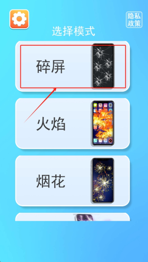 2、选择特效模式:在应用界面选择你喜欢的屏幕特效模式,如“碎屏”、“火焰”或“烟花”。