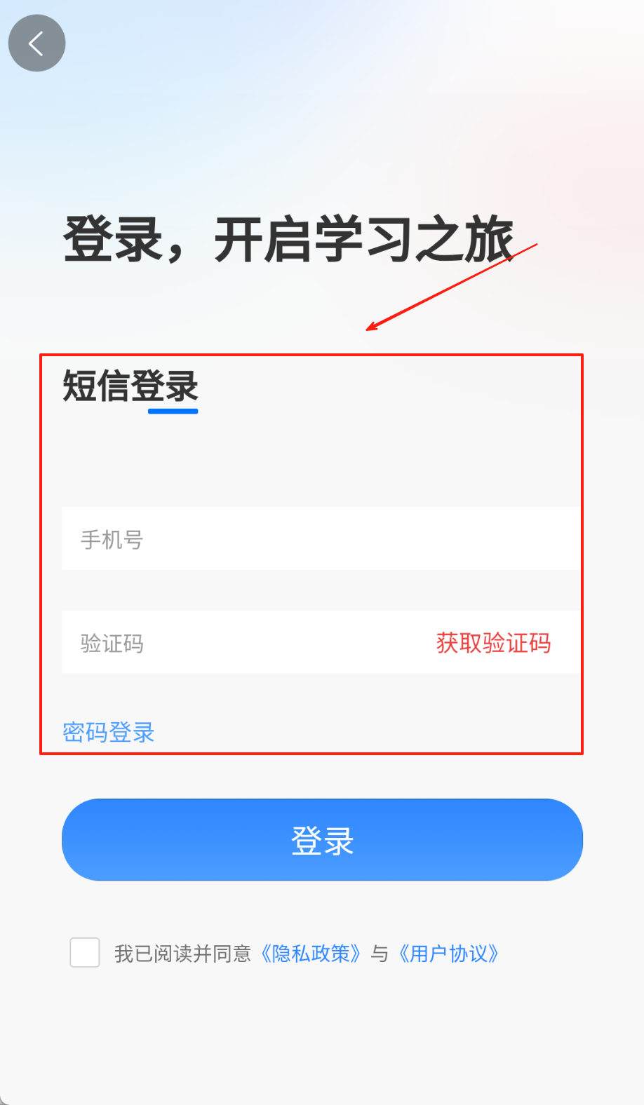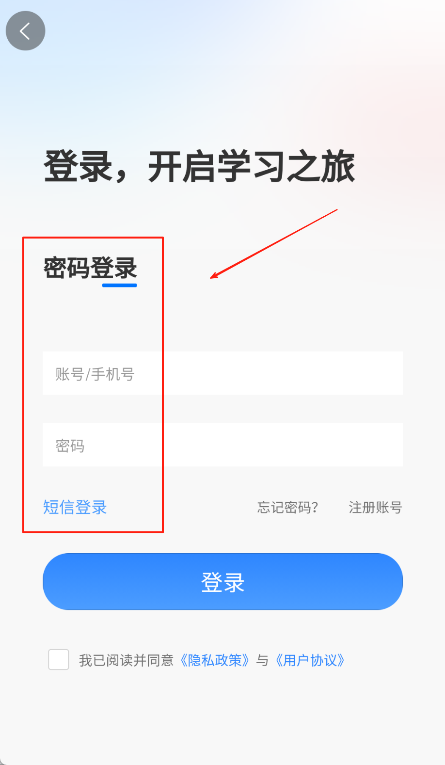 1、看到首页选择密码登录还是短信登录呀,密码登录就填账号和密码框,短信登录要输手机号加验证码呢。