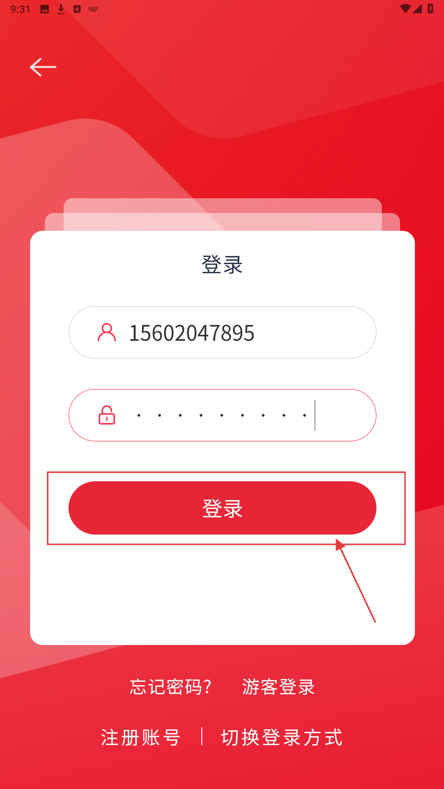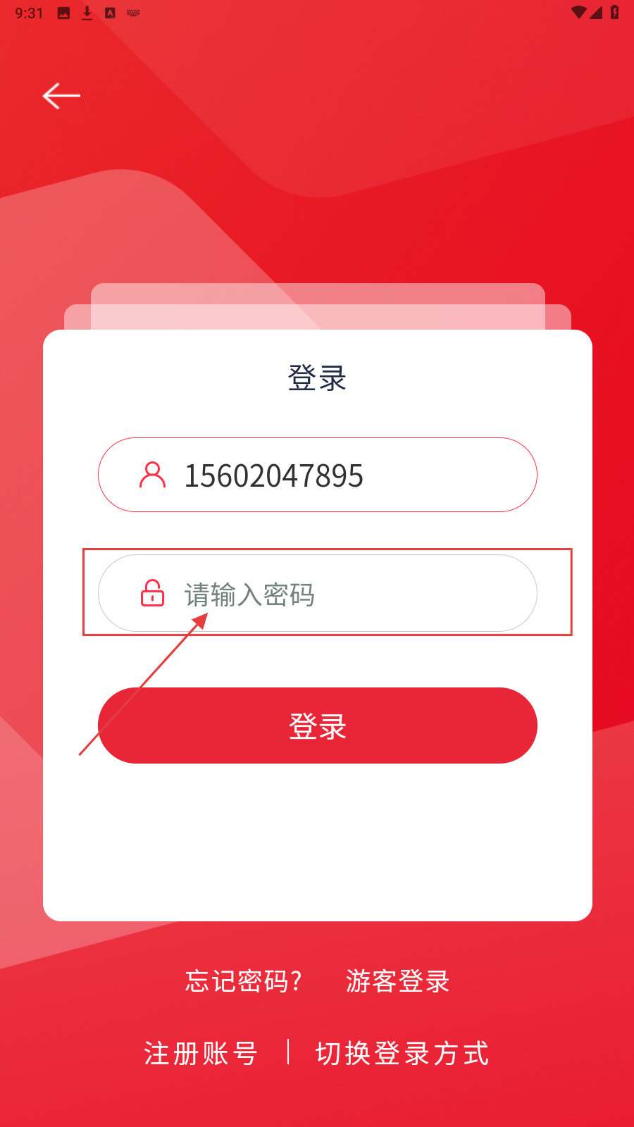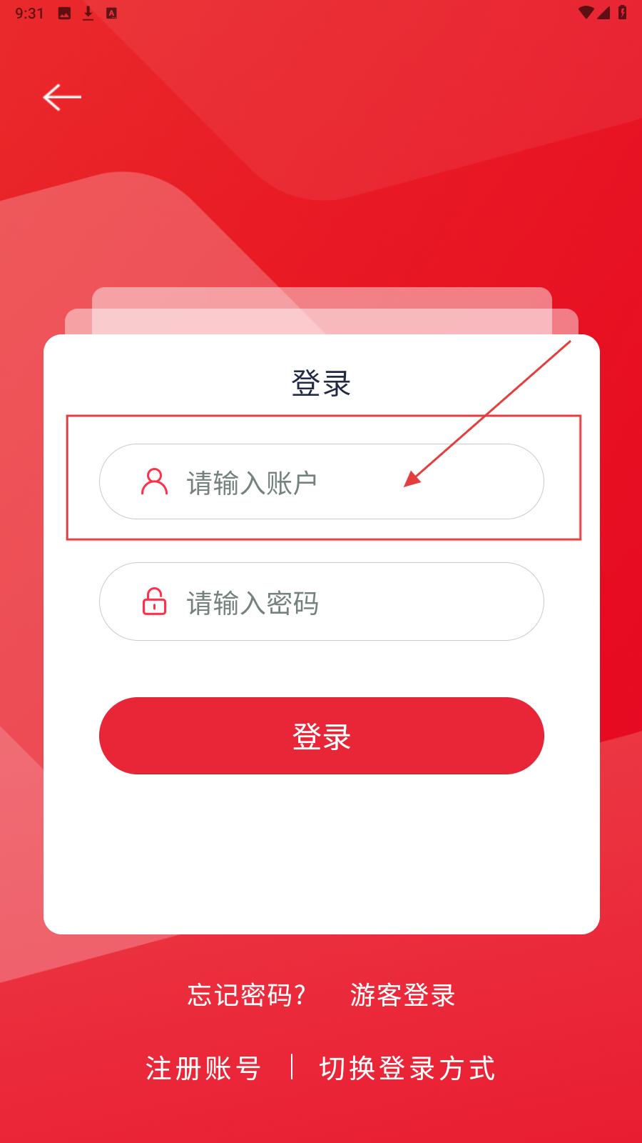 1、打开应用,在登录页填账户。