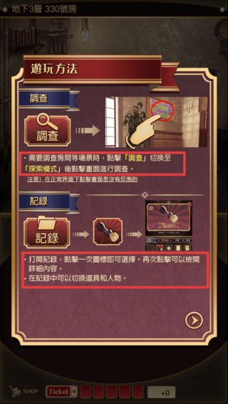 2、进入调查环节,点击“調查”切换至“探索模式”,对场景进行点击调查。按照提示操作,在该模式下寻找线索。