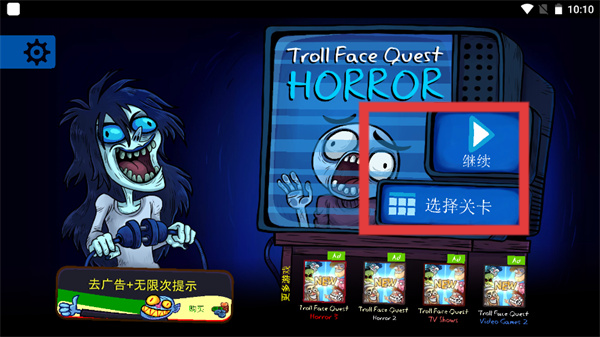 1、游戏开始,在主界面可选择“继续”或“选择关卡”。若想挑战特定关卡,点击“选择关卡”进入关卡选择界面,查看不同关卡画面预览。