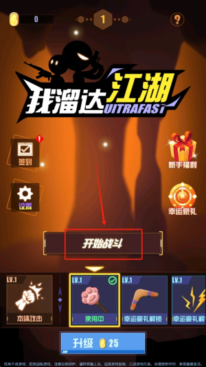 3、开始战斗:在游戏主界面,点击屏幕中央的“开始战斗”按钮,开始游戏。