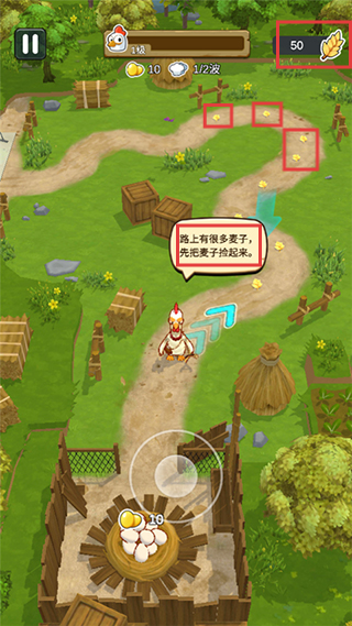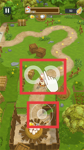 4、核心操作循环:滑动控制角色移动轨迹,拾取散落资源补充库存。触碰鸡蛋孵化作战单位,单位自动锁定进入攻击状态。