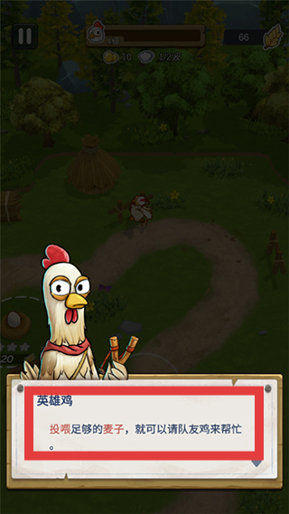 3、当收集到足够的麦子后,依据“投喂足够的麦子,就可以请队友鸡来帮忙”规则,使用麦子召唤队友鸡,增强战斗力量。