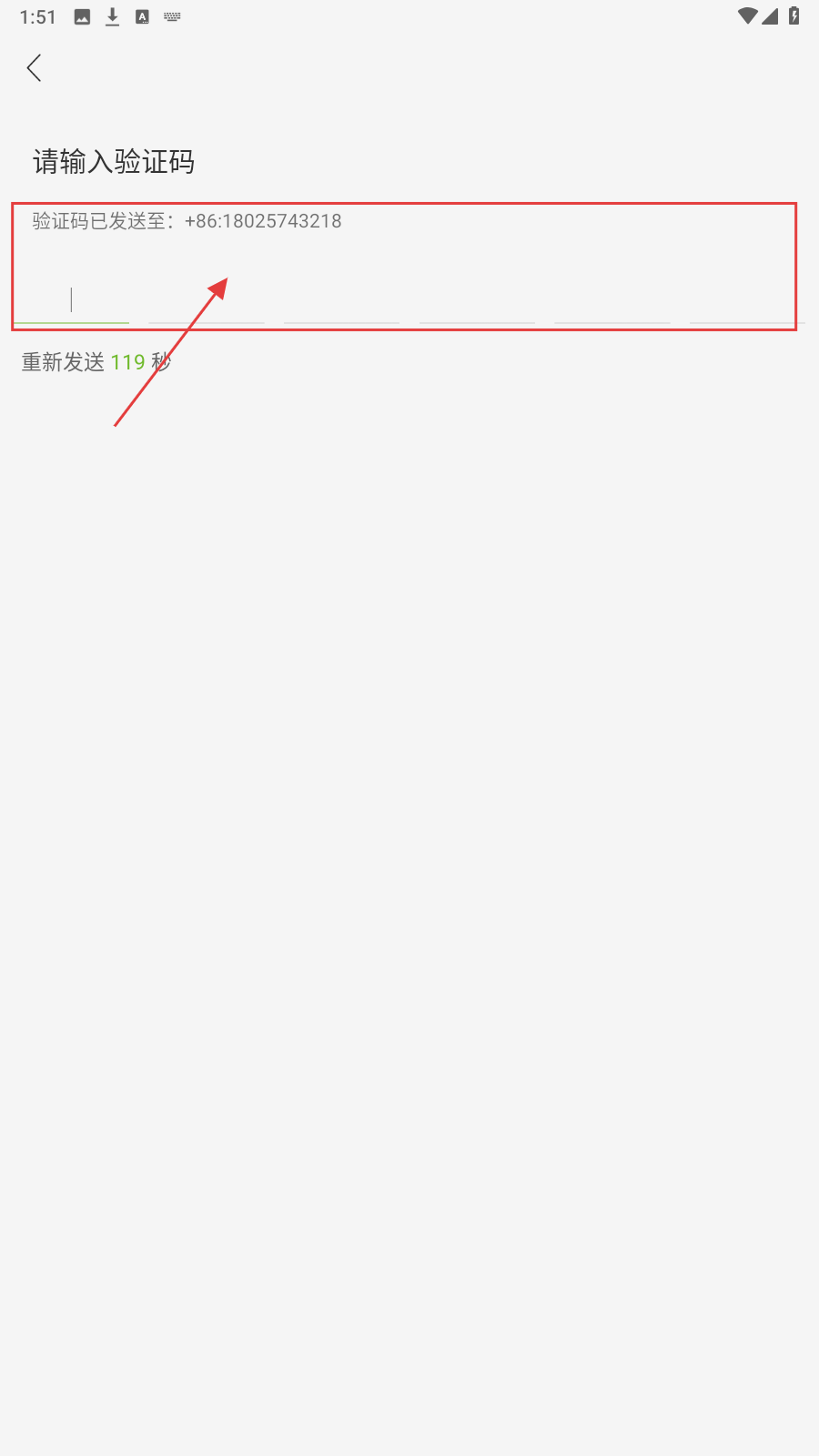 3、进入验证码输入页,填入发送至对应手机号的验证码,完成注册流程。