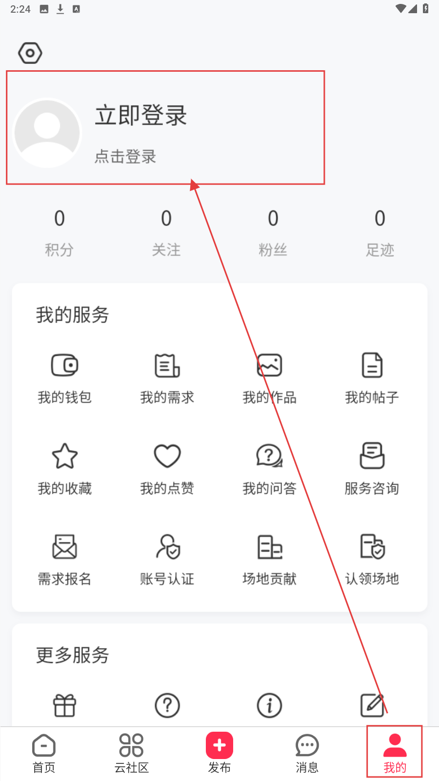 1、打开应用,进入【我的】页,点击【立即登录】区域,跳转至登录界面。