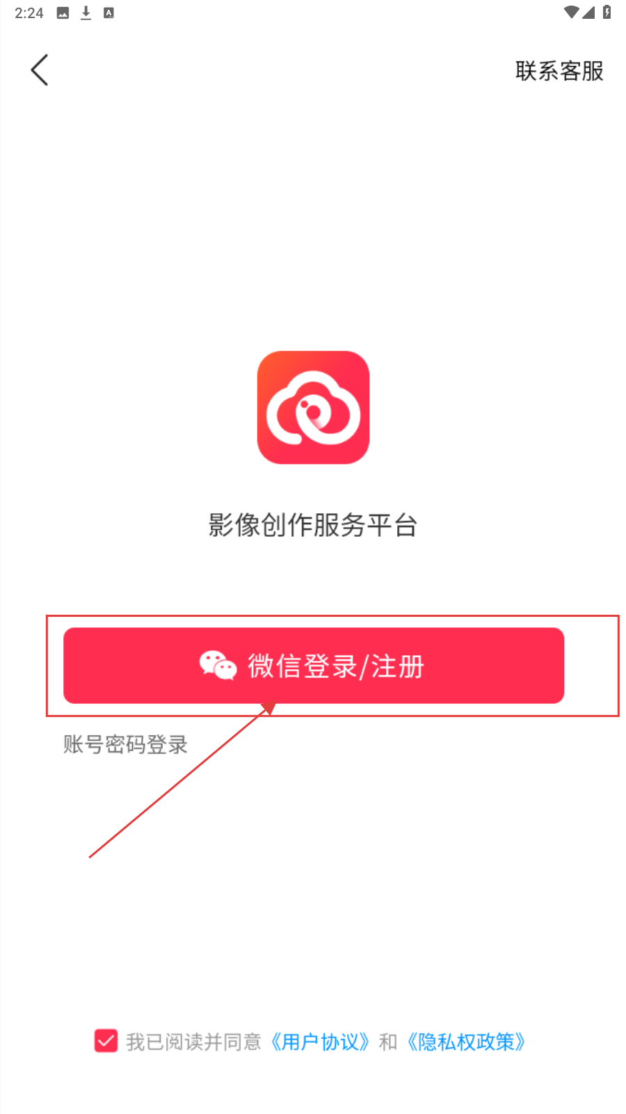 2、在登录页勾选【我已阅读并同意《用户协议》和《隐私权政策》】,点击【微信登录/注册】,完成授权登录。