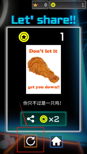 3、分享成绩:游戏结束后,可以选择分享你的成绩到社交媒体,或者点击“回家”按钮返回主菜单。